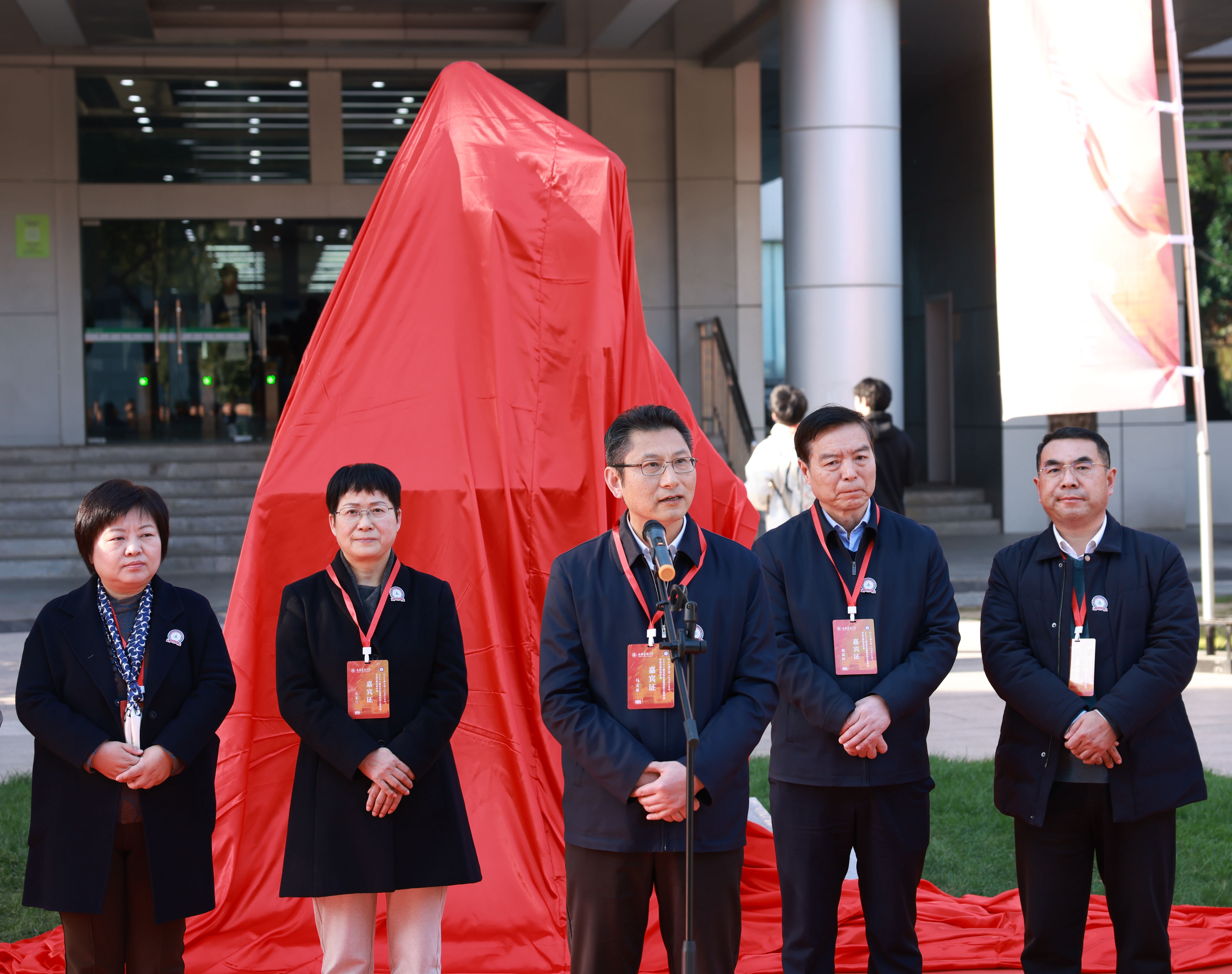 学校领导、授课教师代表共同为郭沫若铜像揭幕。