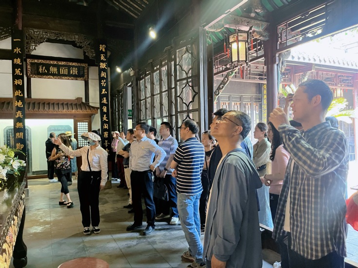 17日下午,学院党委理论学习中心组成员及各教工支部党员赴全国廉政教育基地——包公园开展实践学习活动,先后参观拜谒了清风阁、包公墓、包公祠,感受“文化包公”、领略“文物包公”、了解“历史包公”。随着讲解员的解说,全体参观人员回顾了包公“忠、孝、清、廉”的一生,充分领略了包公清正廉洁、执法严明、铁面无私、不畏权贵的人格魅力,同时还深刻学习了焦裕禄、孔繁森、沈浩等新时期廉政楷模鞠躬尽瘁、死而后已的感人精神。(作者:赵妮,吴钰濛;审稿:胡燕青)