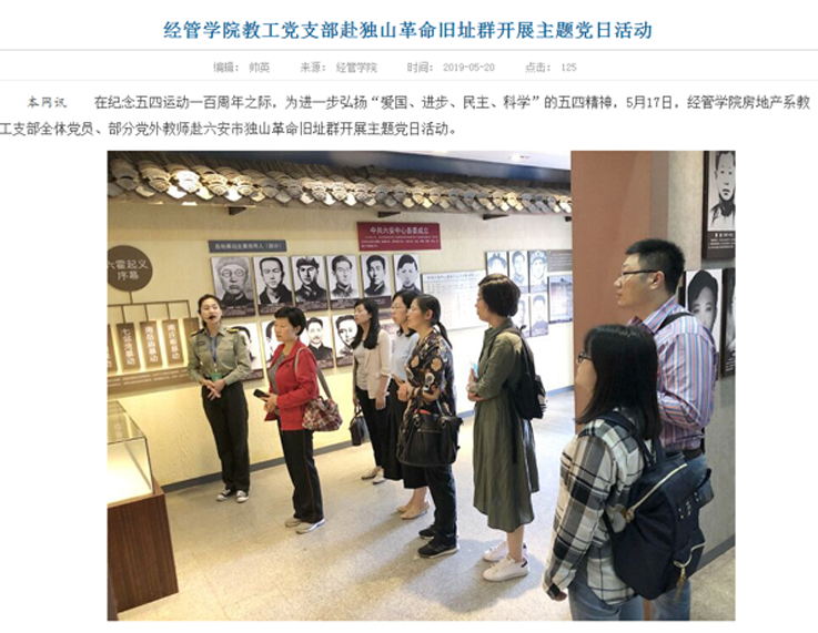 经济与管理学院房地产系教工支部成立于2016年,是一支具有高学历、高职称、高素质、中青搭配、充满活力的集体。近年来,在学校、学院党委的坚强领导下,支部以习近平新时代中国特色社会主义思想和党的十九大精神为指引,严格落实党的组织生活制度和党员教育管理制度,有效实现基层党组织政治功能和服务功能,团结带领广大党员教师坚持为党育才,落实为国育人,“立德树人”根本任务,在教学改革、科学研究、学科建设和人才培养等方面,充分发挥基层党组织的战斗堡垒作用和党员的先锋模范作用。