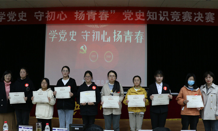 本网讯 为庆贺中国共产党成立一百周年,加强学生对党史的学习与理解,提升在校大学生的思想政治理论水平。公管学院举办了“学党史 守初心 扬青春”党史知识竞赛,经过历时两周的预赛、半决赛,4月7日在主楼1301模拟法庭举行党史知识竞赛决赛,公管学院党委书记李道先、学工部部长斯方龙、校团委书记唐志敏、宣传部副部长李万银、校团委副书记万华、公管学院党委副书记马晓艳担任决赛评委,2020级全体团员近300名学生热情观赛。