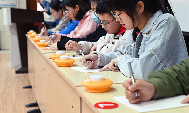 比赛正式开始,十六名选手随机抽签分两组进行决赛,项目分别为必答题、抢答题和主观题。两组选手聚精会神,跃跃欲试,屏幕上轮流展示题目,选手们奋笔疾书。抢答题环节,现场观众屏息凝神,选手们你来我往,气氛紧张,将比赛推向高潮。