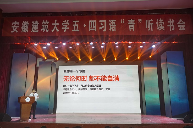 本网讯 百年征程,百年华章。为庆祝建党100周年和五四青年节,深入推进党史学习教育,4月27日晚,学校在大学生活动中心举办习语“青”听读书会,校党委副书记吕萍,安徽省文明办副主任李国兵,安徽省发展和改革委员会科学中心处处长朱的娥,共青团安徽省委学校部部长卢蓉和建大学子一起学习领会习近平总书记那些深入人心的金句,感受总书记的家国情怀。
