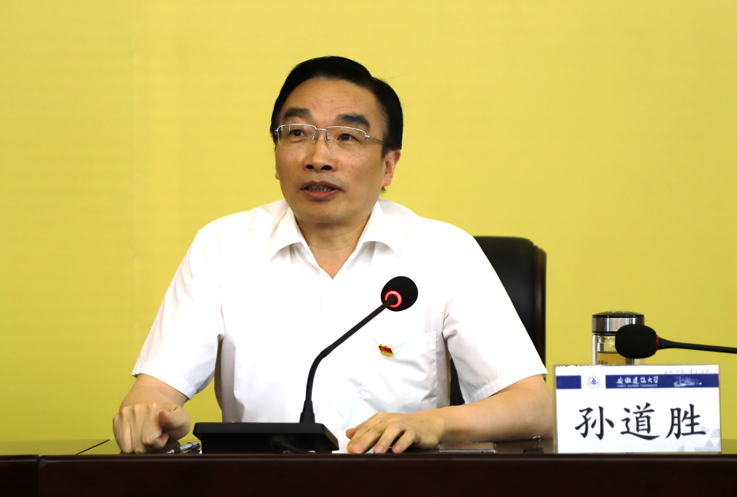 孙道胜指出,“学党史”就是要认真研读党史基本著作,全面了解中国共产党百年奋斗的光辉历程和历史性贡献,深刻认识党带领人民实现了从中华民族从东亚病夫到站起来的伟大飞跃、从站起来到富起来的伟大飞跃,以及迎来了从站起来、富起来到强起来的伟大飞跃。“悟思想”就是要深刻把握开展党史学习教育的重点,在学习领悟中坚定信念,坚持不懈用党的最新创新理论成果武装头脑,要通过学习教育,进一步感悟思想伟力,增强用党的创新理论武装全党的政治自觉;进一步地把握历史发展规律和大势,始终掌握党和国家事业发展的历史主动;进一步深化对党的性质宗旨的认识,始终保持马克思主义政党的鲜明本色;进一步总结党的历史经验,不断提高应对风险挑战的能力水平;进一步发扬革命精神,始终保持艰苦奋斗的昂扬精神;进一步增强党的团结和集中统一,确保全党步调一致向前进。“办实事、开新局”就是要加强内涵建设,切实把立德树人根本任务落到实处,着力推动学校“十四五”实现高质量发展,要坚持以高水平干部队伍建设引领学校高质量发展,要坚持以高水平师资队伍建设支撑学校高质量发展,要坚持以高水平学科专业建设推动学校高质量发展,要坚持以学校治理体系和治理能力现代化建设保障学校高质量发展。