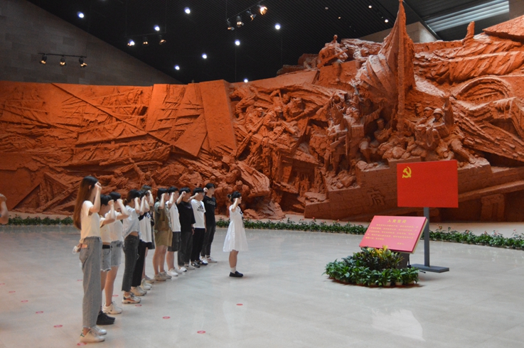在渡江战役纪念馆广场,学生党员们先后瞻仰了胜利塔以及“五前委”雕塑,学生党员们怀着崇敬的心情参观了渡江战役纪念馆,馆内一件件烈士遗物,一位位烈士的光辉事迹,借助现代的技术手段栩栩如生地呈现在眼前,让大家深切地感受到革命先辈吃苦耐劳、英勇无畏的精神品质。最后学生党员在胜利之师雕塑前面对着中国共产党党旗进行庄严宣誓,重温入党誓词。