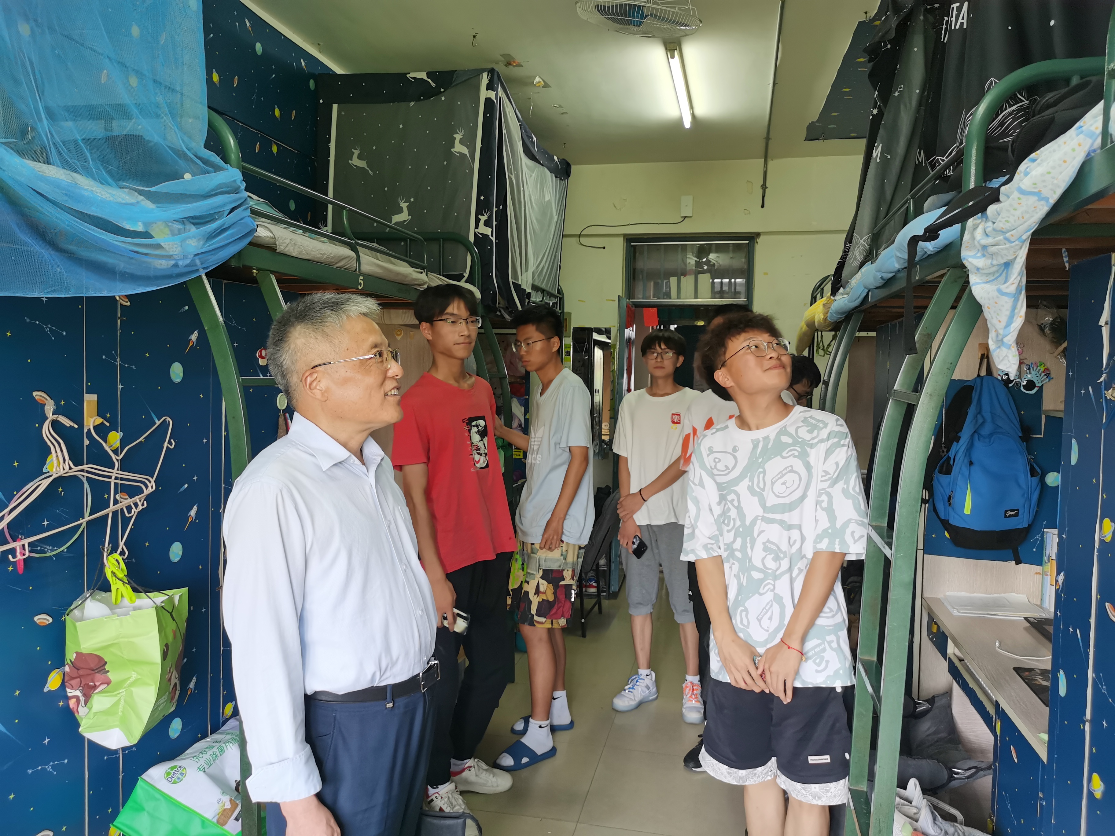 座谈会结束后,丁克伟与同学们一同前往学生宿舍,在检查学生宿舍用电、用水、消防等方面安全的同时,与学生“拉家常”,了解学生家庭情况,倾听学生在学校宿舍文化建设与日常管理方面的意见建议。