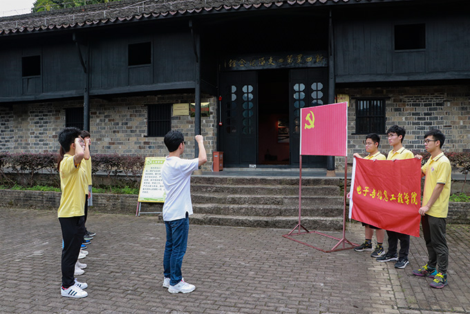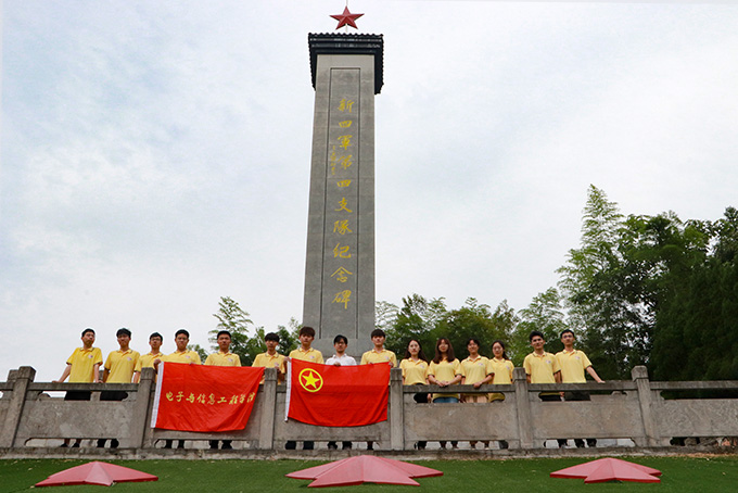 师生党员们先后参观了新四军第四支队纪念碑和新四军第四支队纪念会馆,结合暑期“三下乡”“青年红色筑梦之旅”社会实践主题,在重走革命路的同时,学习红色历史,追溯红色记忆,缅怀先进事迹。在纪念会馆前,师生党员们郑重向党旗宣誓,重温入党誓词,坚定对中国特色社会主义的信念,增强使命担当。