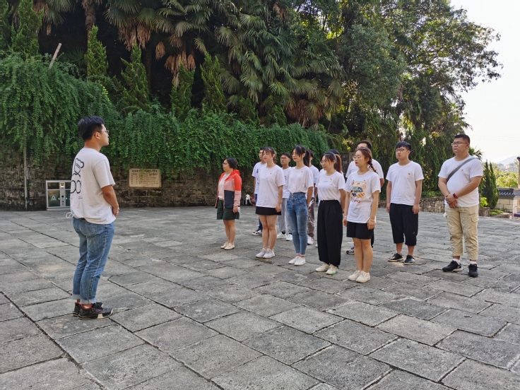 烈日炎炎,参加此次教育活动的学生党员在皖南事变烈士陵园门前集体朗诵《少年中国说》,声声呐喊“请党放心,强国有我”,铿锵有力,向党许下青春誓言。