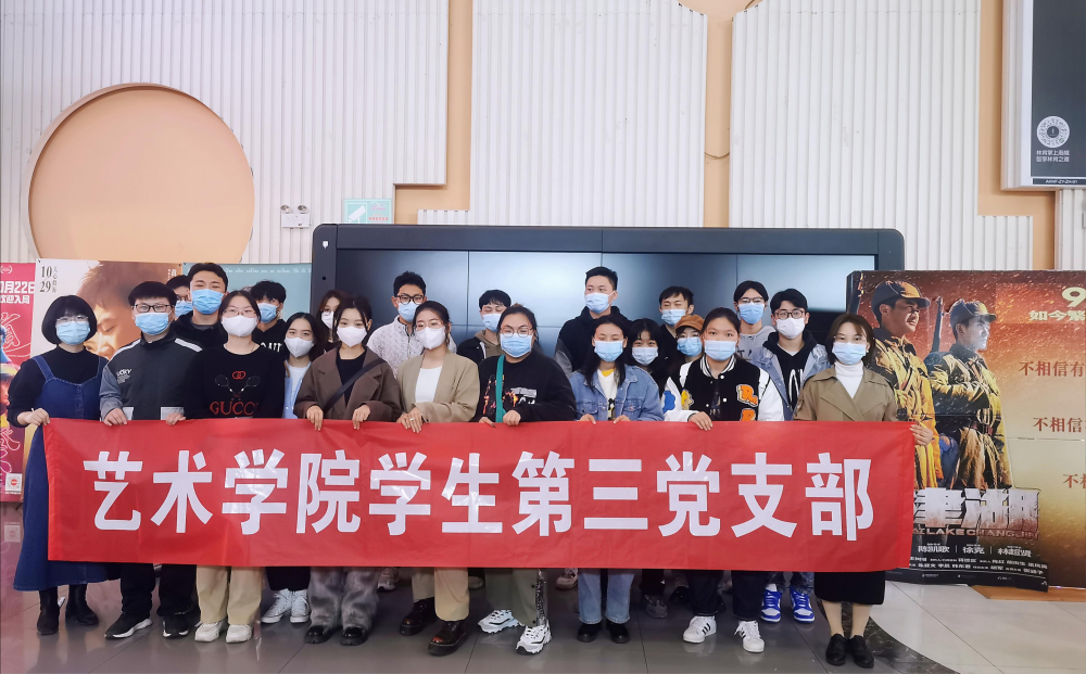 本网讯  为进一步深入学习党史,加强学生党员爱国主义教育,11月3日下午,艺术学院学生第二、第三党支部在党支部书记和辅导员老师的带领下观看了电影《长津湖》。