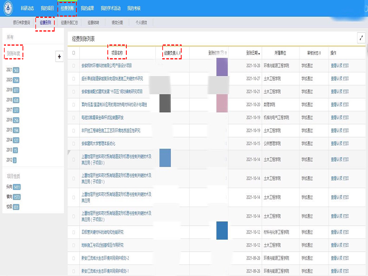 【我为师生办实事】科技处科研管理系统增加经费到账查询功能