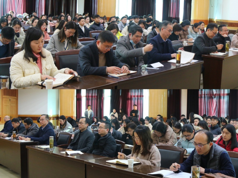 本网讯  为深入学习领会党的十九届六中全会精神,赓续百年初心使命,用党的历史经验启迪智慧,从百年党史中汲取奋进力量,全面推进新时代学校教育事业迈上新台阶。12月22日,副校长蔡新立在北校区F楼3楼报告厅为公管学院百余名师生党员作十九届六中全会精神宣讲报告。宣讲报告会由学院党委书记主持。