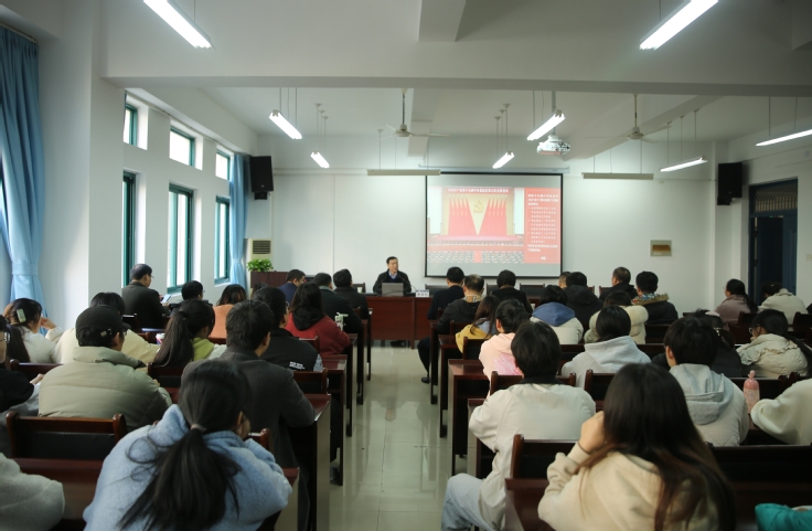 本网讯  12月22日,党委副书记、校长黄显怀深入环能学院宣讲党的十九届六中全会精神,环能学院、外国语学院师生党员、学生代表共百余人现场聆听宣讲报告。宣讲报告由环能学院党委书记主持。