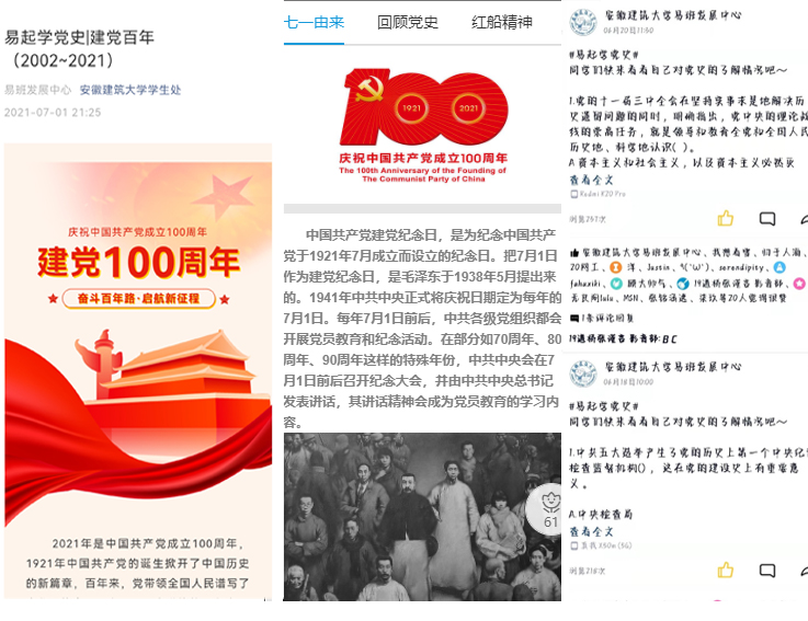 校易班发展中心党史学习教育系列活动,始终与伟大的建党精神同向同行,不仅丰富了我校党史学习教育,在深化网络育人效果、增强学习教育向心力、升华学生的爱党爱国情感上也起到了重要作用。下一步,校易班中心将常态化推进优秀主题教育活动,在优化网络内容供给和创新校园网络文化生态方面精准发力,唱响网上主旋律,传播社会正能量,全面推进易班建设再上新台阶。(文/图:王梦婕;审稿:徐庆和)