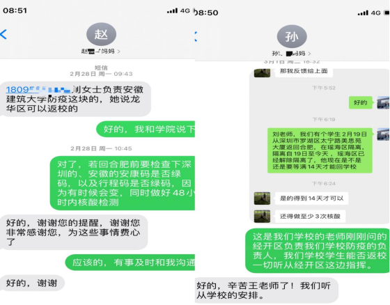 建立动态数据库。各辅导员实时掌握学生所在地区的动态疫情讯息,并每日开展一对一聊天和沟通,为学生心理疏导,引导学生树立乐观心态,指导学生利用网络资源开展自我学习。加强与家长联系、沟通,认真耐心地宣传和传达学校及社区关于中高风险区学生返校的政策和要求,凝聚家校育人合力。