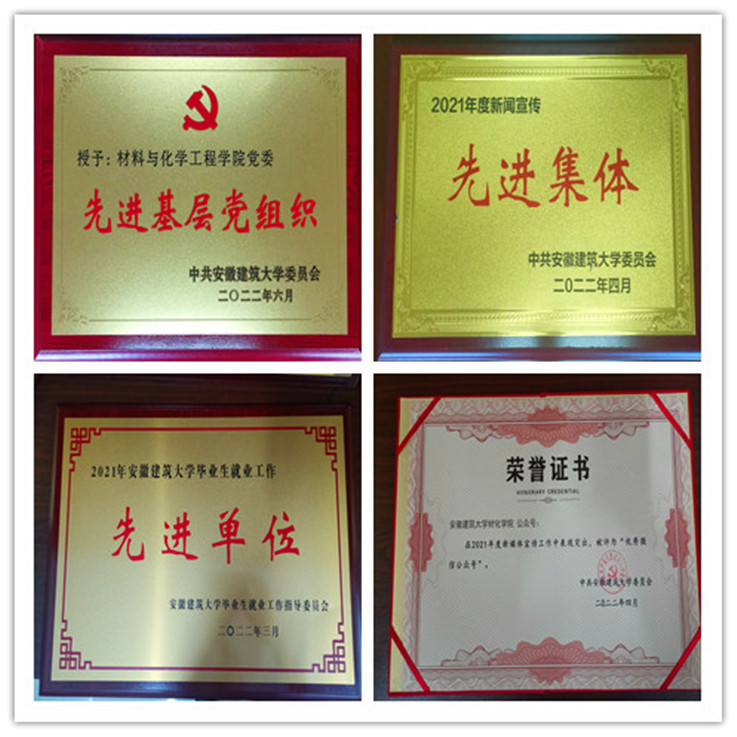 推进党建工作与教学科研的深度融合,实现以党建带动教学科研质量的全面提升。近年来,党建引领发展成果丰硕,学院获得“全国教育系统先进集体”荣誉称号。重视教学研究,累计获得省级及以上质量工程项目47项,国家级一流专业3个,获省级教学成果奖4项,其中特等奖1项、一等奖2项;强化学科专业建设,获批国家级一流课程1门,省级教学团队1个,省级精品课程、慕课等17门,无机非金属材料工程系、高分子材料与工程系获省级示范基层教学组织,无机非金属材料工程、高分子材料与工程顺利通过专业认证(复评);注重教师培养与名师培育,高分子材料与工程系徐文总老师荣获“全国优秀教师”荣誉称号,获省级教学名师4名、教坛新秀4名,金属材料系马婕老师获安徽省课程思政教学比赛一等奖;重视科技成果凝练与转化,获安徽省科技进步奖9项,中国铁路工程总公司科学技术奖1项,学院承担包括国家重点研发课题、科技支撑计划、国家自然科学基金、安徽省重大专项、重点研发项目、安徽省自然科学基金以及企业委托各类纵横向科研项目100余项,科研经费3000余万元。