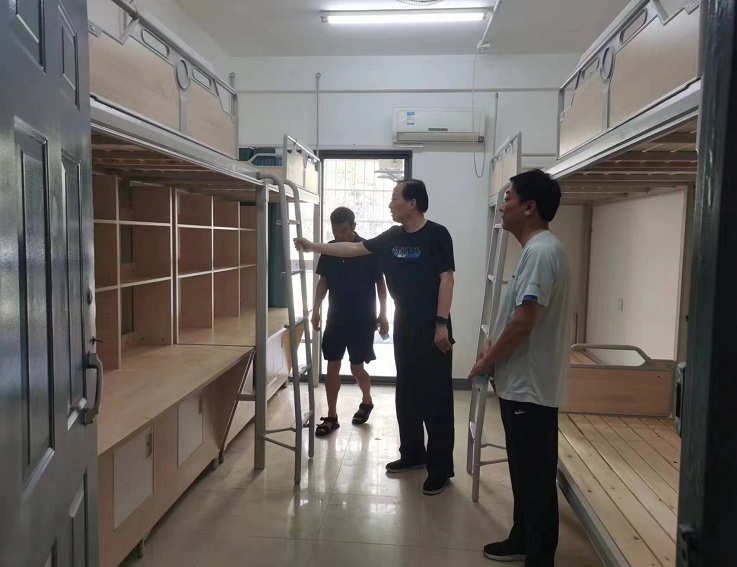 在检查过程中,蔡新立就暑期学生公寓维修、公寓床安装、卫生保洁、热水进公寓施工进程、图书馆自修室空调安装、食堂装修等方面进行了全面了解,并提出了指导意见。