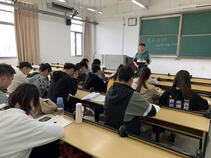 本网讯 10月20日,电信学院学生第三党支部在逸夫楼5204教室开展党员活动。本次活动由支部书记孙长城主持,全体学生党员结合党的十九大精神,专题学习《习近平谈治国理政》第三卷,以“发扬五四精神,不负伟大时代”为主题,分享交流自己的心得体会。