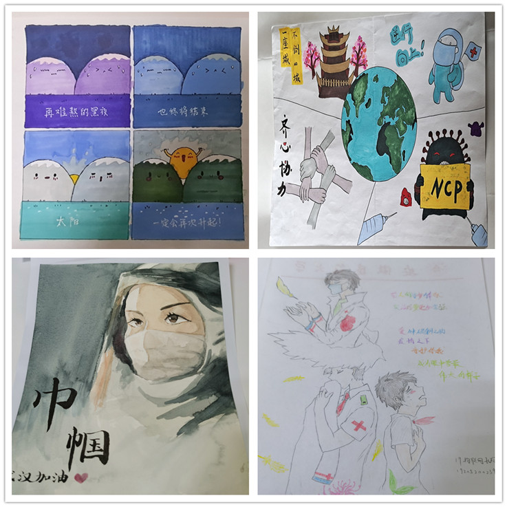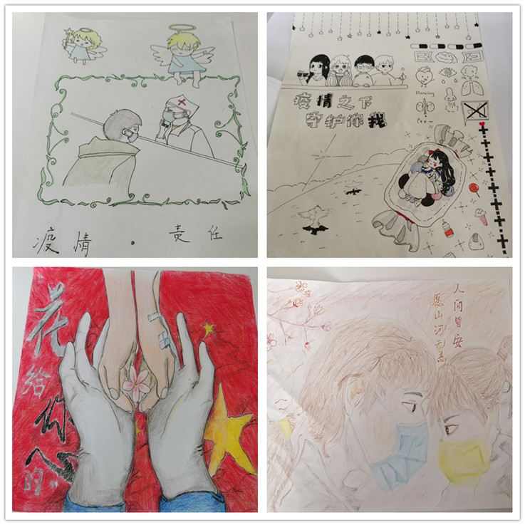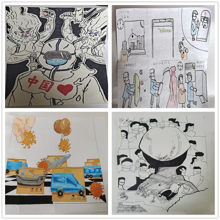 同学们用线条与情感碰撞,描绘出栩栩如生的抗疫画像:强大祖国支撑起一个坚硬的后盾,全国上下勇敢地与病毒抗争,一线救护者从死神手中挽救一个又一个生命。这些作品不仅仅是一幅漫画,更传达着创作者深深的敬意与美好的期望。