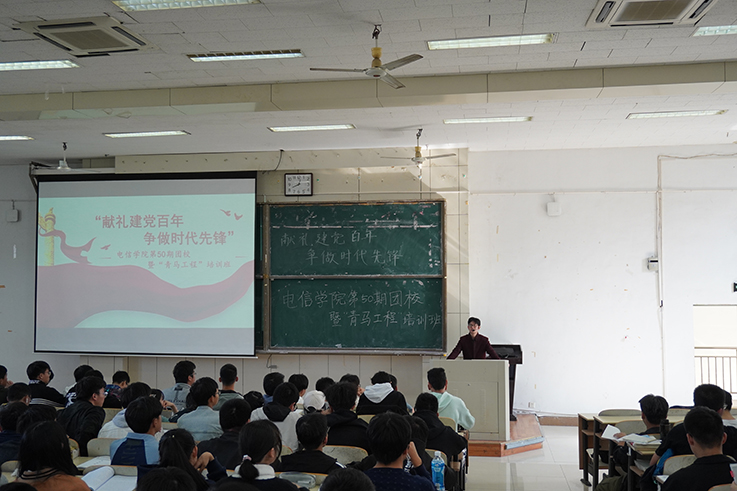本网讯 为深入学习贯彻习近平总书记关于青年工作的重要论述,切实增强广大团员青年的团员意识和综合素质,凝聚团支部力量,加强团支部的组织建设和思想建设,电信学院团委于11月19日在南校区主教楼1411举办2021年第50期团课暨“青马工程”培训班,全院近330名学员参加本期培训。