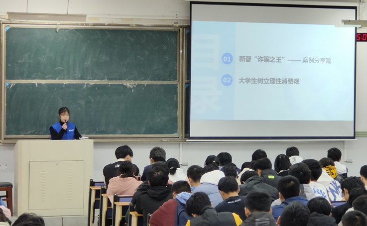 本次讲座两个部分。蓝马甲志愿者首先同学们介绍新晋“诈骗之王”—案例分享,例举了交友网站“杀猪盘“陷阱、校园贷、虚拟货币及钓鱼网站等几种典型诈骗方式。然后,志愿者们给同学们讲述了大学生合理消费观,并提了大学生合理消费六建议:量入为出,适度花销;控制开销,拒绝浪费;天天记账,笔笔明晰;计划消费,适度奖励;额度设定,理性消费;养成节约的消费意识。