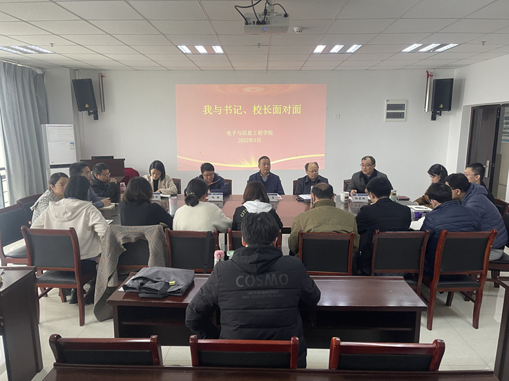 本网讯  为进一步了解青年教师诉求,帮助青年教师解决发展中的瓶颈问题,着力解决教师实际困难,331日,校党委常委、副校长闵杰教务处、科技处负责同志,深入电信学院开展“我与书记、校长面对面”活动。电信学院党政领导班子、院科研办、教学办工作人员、各系(中心)正副主任近五年新进青年教师代表参加座谈会