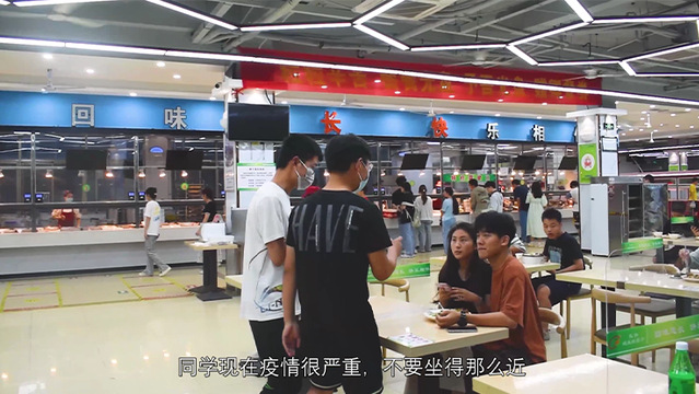 2021级计科1班团支部作品《人至“疫”尽》讲诉四名大学生加入学院疫情防控青年团员先锋队,从事志愿服务工作,为师生们测量体温,引导同学们就餐时保持距离,并以此体会到志愿服务工作者的辛苦。本作品也以学生的视角真实反映了疫情防控期间,学校和学院采取的一系列有效的防控措施。