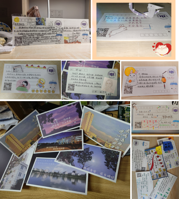 “海上升明月,天涯共此时”,为庆祝双节佳日,学院团委学生会结合学校特色风景人文元素,为每位新生同学设计制作了精致的节日祝福明信片。同学们在明信片上绘制书写文字和个性图案,并在节日当天寄送给家人或者师长,以表达对家人的思念、对老师和亲人们的感恩与祝福。