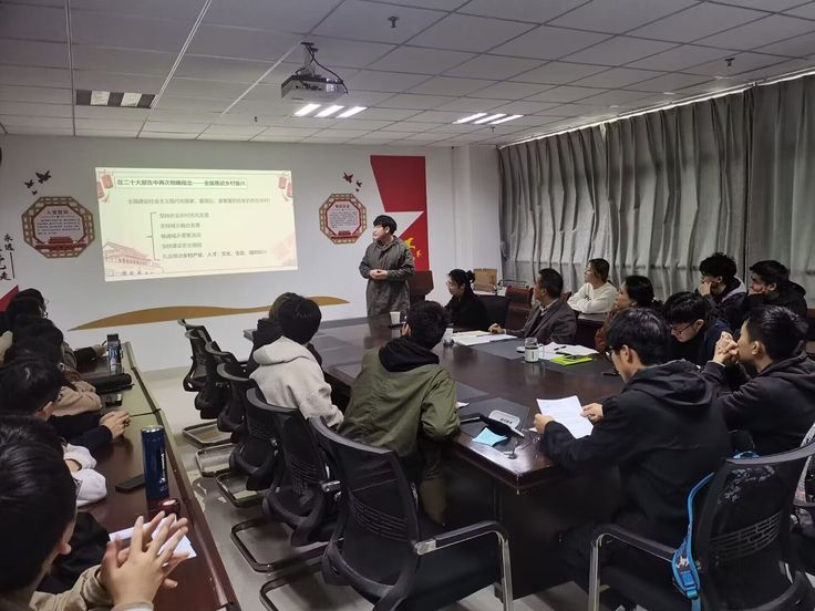 随后,支部开展了“初心永向党,奋斗正青春”二十大精神学习交流分享活动。5名支部党员代表在认真学习二十大精神的基础上,结合自身实际情况,分别从生态文明、乡村振兴、文化自信、科教兴国、依法治国等方面进行交流分享。闵杰校长认真聆听每一位党员代表的发言,并予以点评和指导,会场氛围轻松热烈。