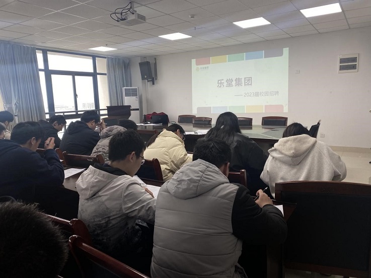 会前,电信学院党委副书记丁媛媛与乐堂集团相关负责人进行了沟通交流,就毕业生基本情况、目前求职形势、访企拓岗等方面进行交流。随后的宣讲环节,招聘单位详细介绍了行业前景,公司经营业务板块及人才需求。在宣讲结束后,进行了现场笔试环节。后期,经过初步筛选,再另行安排面试。