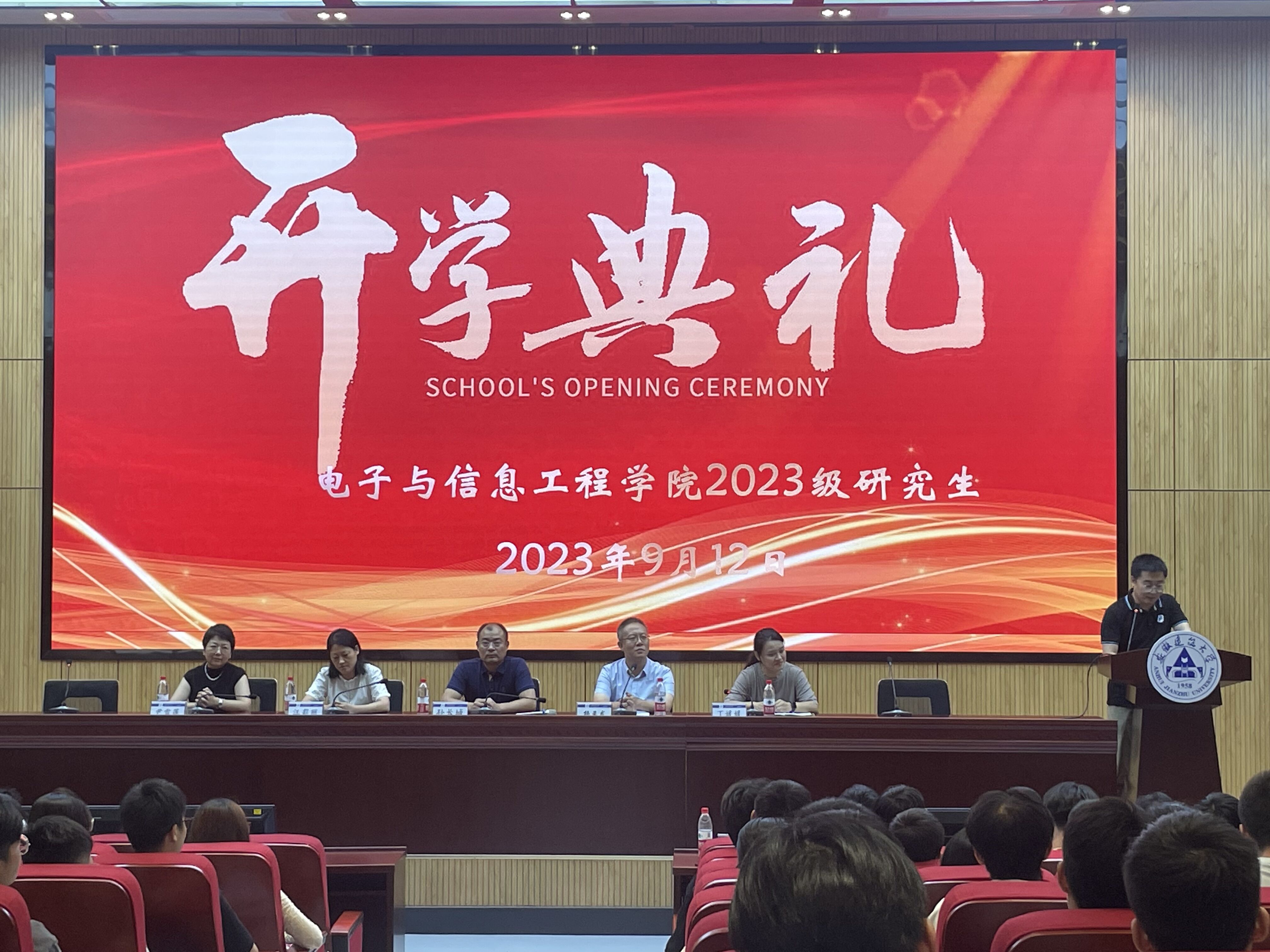 本网讯  912日中午,电子与信息工程学院2023级研究生开学典礼在南校区实训综合楼二楼报告厅举行,2023186名研究生欢聚一堂,翻开人生新的篇章。学院领导班子、研究生导师、辅导员、优秀老生代表出席典礼。典礼由学院党委副书记丁媛媛主持。