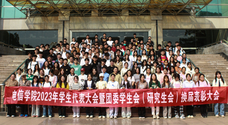 会议结束后,全体参会人员于主教楼前进行合影留念。在一片热烈的掌声中,2023年电信学院学生代表大会暨团委学生会(研究生会)换届表彰大会圆满结束。此次大会的召开,进一步推动了学院共青团发展和学生组织建设,明确了工作目标,指明了今后学院学生组织建设的工作方向。(文/图:孙晓庄、杨玲、胡郑伟,审稿:孙长城)