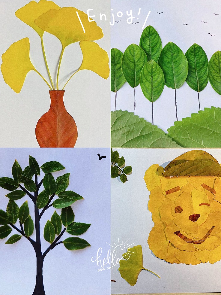 活动中,同学们提前收集形态各异色彩斑斓的树叶,现场根据树叶的形状、颜色、纹理、结构等开始制作。大家通力合作,将树叶用剪刀裁剪成不同的形状,通过拼接粘贴等步骤,充分发挥自己的想象力,将一片片树叶变成一幅幅精美的树叶贴画作品。