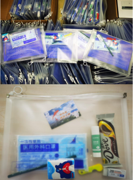 学院精心准备充满寓意的考研礼包中每份礼物都代表了期盼与祝愿,一份实用的文具套装祝愿考研学子在考场泼墨挥洒,下笔如有神助,描绘锦绣前程;一袋手帕纸——“纸”定有你;一副口罩,在保障健康卫生的同时也象征着--福星高“罩”;一盒德芙巧克力,愿考研同学克服研途困难,动力满满,坚定不移奔向梦想;一张祝福考研学子“信”心百倍的明信片由老师和学弟学妹们共同写就,携众人期盼,祝福考研学子圆梦而归。