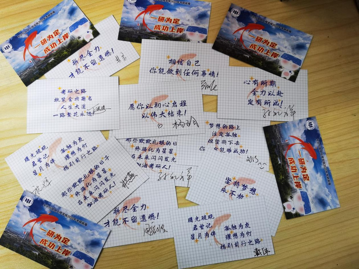 本网讯 2024年全国硕士研究生招生考试即将拉开序幕,电信学院的学子奋笔疾书,终于要迎来收获的季节。为帮助考研学子坚定目标、调整心态、树立信心,电信学院近日组织开展了“情暖助考,一“研”为定”主题考研路上送温暖活动,用心为各位考生献上真挚的祝福。