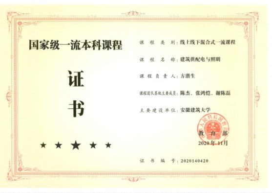 教材建设方面,2003年,我校编制了全国第一本智能建筑领域的实验教材《智能建筑实验指南》;2010年,主编“十二五”国家规划教材《建筑电气》,2017年,开发在线开放MOOC课程,2021年,获首届全国教材建设奖二等奖;2017年,主编土建类学科专业“十三五”规划教材《建筑组态控制技术》、《建筑物联网技术》与《智能化工程设计与集成》;2020年,“建筑供配电与照明”与“智能建筑综合实验”两门课程获批首批国家级一流课程。