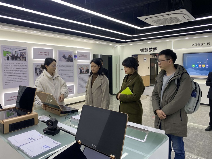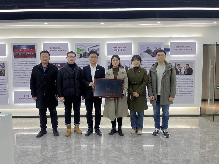 在安徽文香科技股份有限公司,学院一行在公司教育研究院院长林欣的陪同下参观了公司智慧化展厅,详细了解了企业发展历程、公司主营业务等情况。