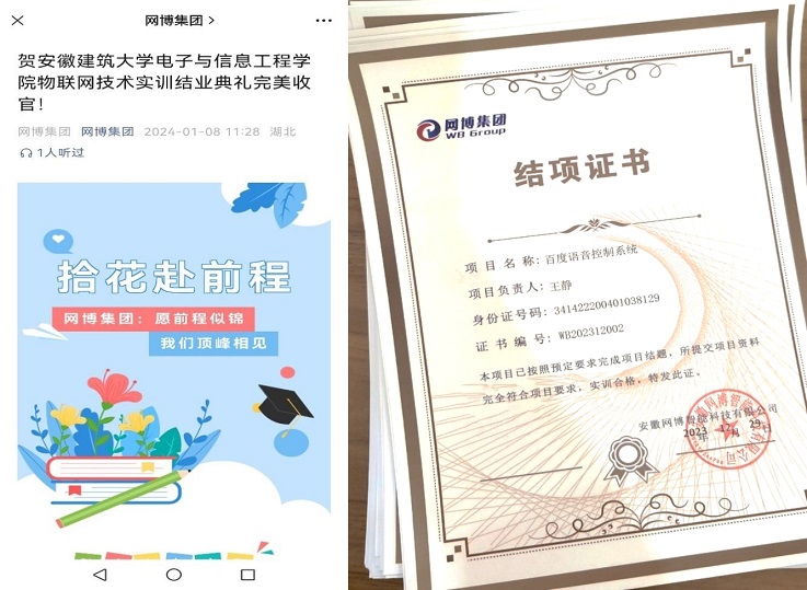 联合安徽网博智能科技有限公司开设物联网工程专业“百度语音控制系统设计”项目实训。联合合肥中科深谷科技发展有限公司开展计算机科学与技术专业人工智能暑期夏令营。