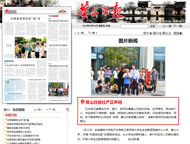 本网讯 机器人挥舞手臂,芯片奏鸣交响,3D打印绘蓝图,虚拟现实搭桥梁。稚嫩眼眸里充盈着对科技奥妙的探寻和无尽创想。为积极响应“教育强国、科技强国”战略号召,进一步推动科学知识的普及,提高乡镇中小学生的科学素质,近日,电信学院组建科普教育专项志愿服务师生团队,深入黄山市黟县乡镇中小学开展了一系列丰富多彩的科普教育志愿服务活动。