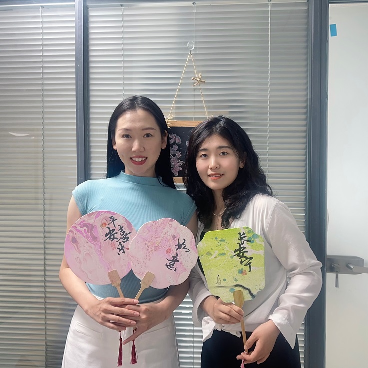 漆扇制作活动则为师生们提供了一个展示艺术才华的平台。在专业老师的指导下,大家动手制作了精美的漆扇,既传承了传统文化,又增进了同事之间的交流与合作。“哇,你这个颜色真漂亮!”、“你做的也好看,好成功!”职工小家中,不时传来老师们兴奋的欢呼,五彩斑斓的扇面构成了一幅幅生动的画面,让人感受到了浓厚的艺术氛围。