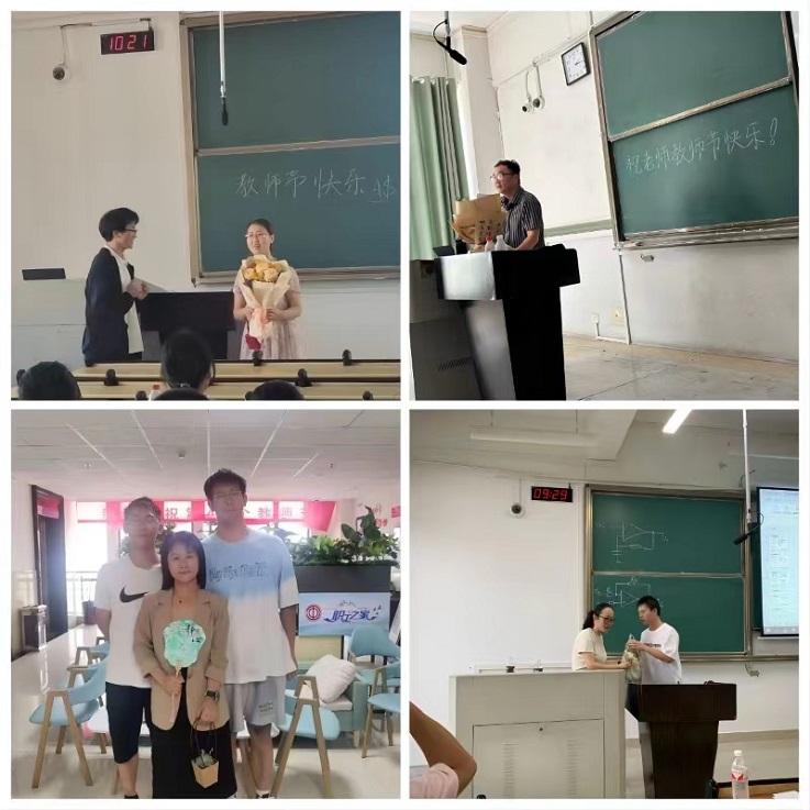 910日,伴随着清脆的上课铃声,课堂上全体同学主动起立,向任课老师们整齐问好,道一声“老师,您辛苦了!”学生代表上台为老师们送上鲜花和卡片等小礼品,感恩老师们的辛勤付出。老师们接过鲜花和卡片,脸上洋溢着幸福的笑容,感受到了教书育人的成就感和幸福感。开学伊始,院团委学生会号召各团支部精心策划教师节活动,精巧设计,自愿表达,引导学生形成尊师重教的良好校园氛围。