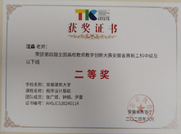 本届大赛安徽省赛由安徽省教育厅主办、安徽财经大学承办。以“推动教学创新 培养一流人才”为主题,按照“四新”建设、基础课程、课程思政、产教融合等领域设7个大组,设置了网络评审与现场赛两个环节,其中课堂教学实录视频、课程教学创新成果报告为网络评审,课程教学设计创新汇报为现场赛。电信学院汪淼教师(团队)获得新工科中级及以下组二等奖、徐荃教师(团队)获得产教融合赛道三等奖。