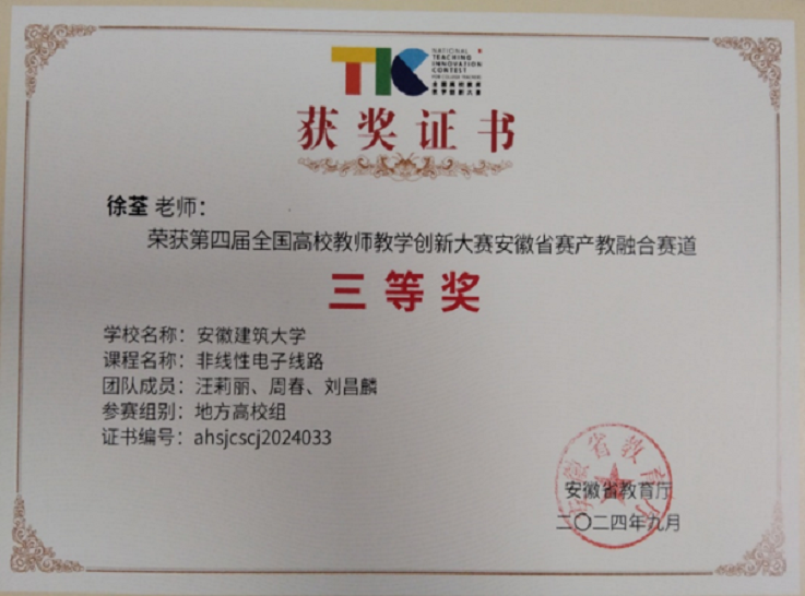 本网讯  近日,第四届全国教师教学创新大赛圆满结束。电信学院教师荣获安徽省赛二等奖、三等奖各1项的好成绩。