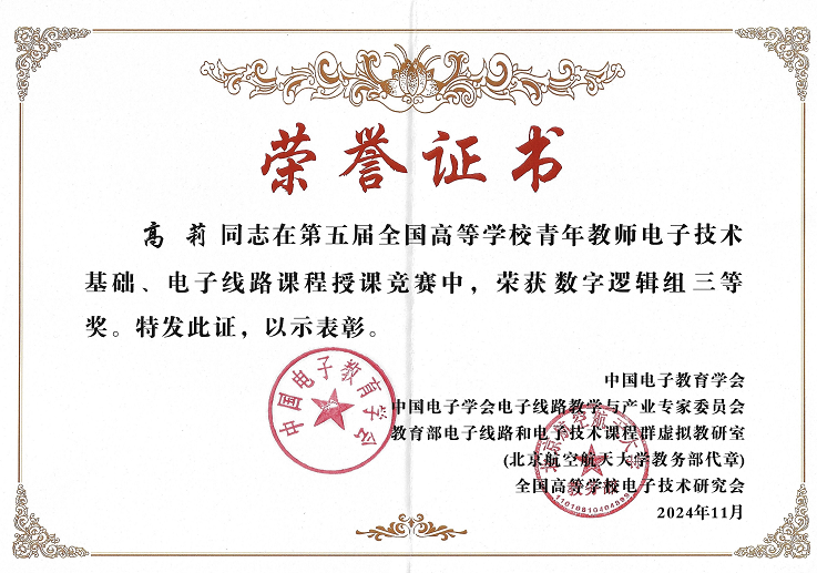 本网讯  118-12日,第五届全国高校青年教师电子技术基础、电子线路课程授课竞赛总决赛在海南三亚落下帷幕。我校电子信息工程学院教师高莉荣获全国三等奖。
