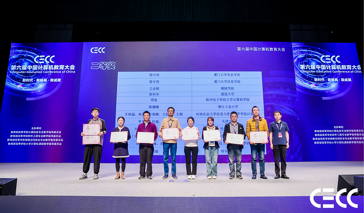 大会期间,举行了第六届中国教育大会计算机类课程教学和实验案例设计竞赛颁奖典礼。本次案例设计竞赛吸引了全国近百所高校参与角逐,电子与信息工程学院教师在竞赛中取得了优异的成绩。其中,张红艳、丁伟、王萍等教学团队的教学和实验案例荣获全国一等奖和二等奖各一项。