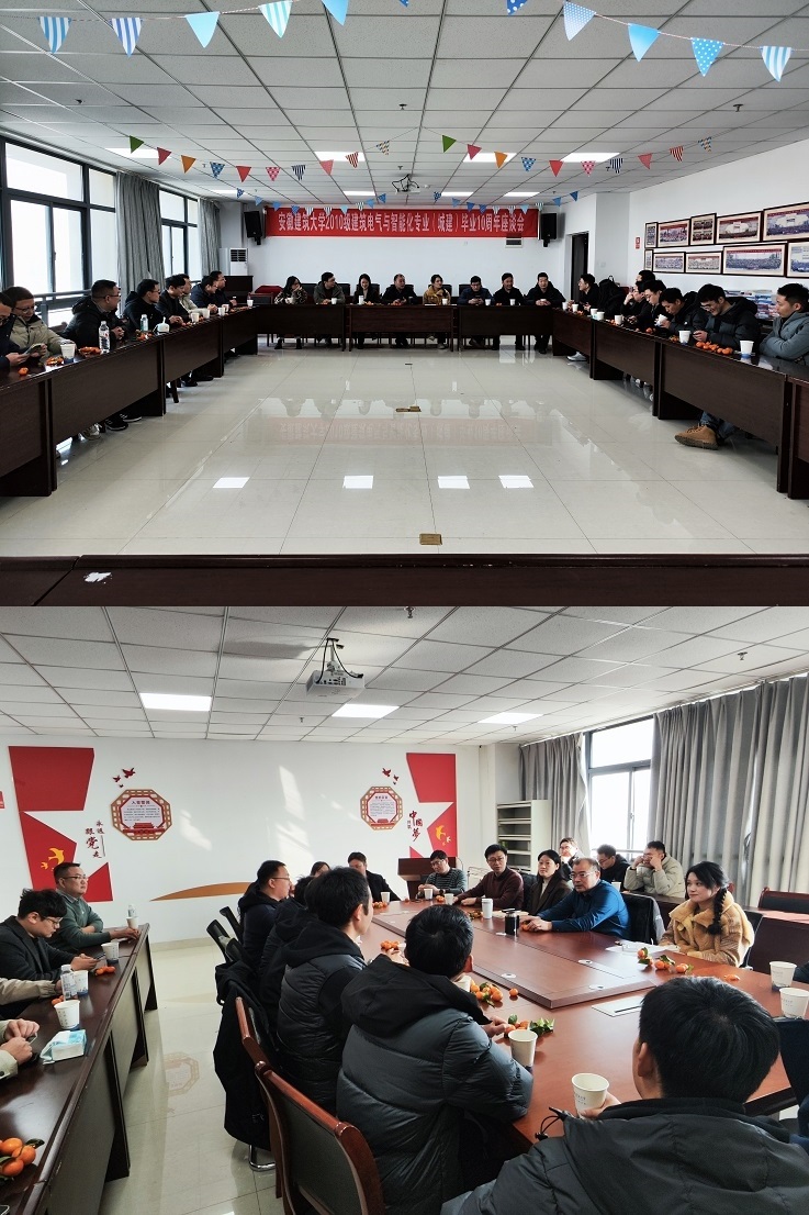 下午,2010级建筑电气与智能化专业(城建)校友在实验综合楼1112举行座谈会。电信学院党委书记孙长城、学院党委副书记丁媛媛、副院长汪莉丽、及相关老师出席活动,全体返校校友参加座谈,孙长城主持会议。会上,孙长城书记代表电信学院对校友返校表示热烈欢迎和诚挚问候,对校友们长期关心支持母校发展表示衷心感谢。同时,介绍了过去10年学校和学院的发展,也希望各位校友一如既往关心支持母校建设,在毕业生招聘、实践育人、科研项目等方面加强校企合作。