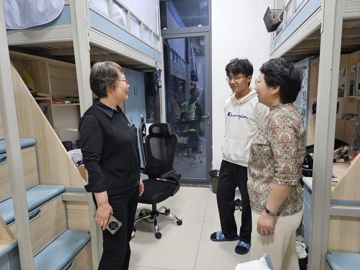 当晚,调研组走进学生宿舍,实地查看住宿环境,与同学们亲切交流。张润梅详细询问了学生的日常起居、校区通勤及课余生活情况,对学生们昂扬向上的精神状态、刻苦钻研的学习态度深感欣慰。