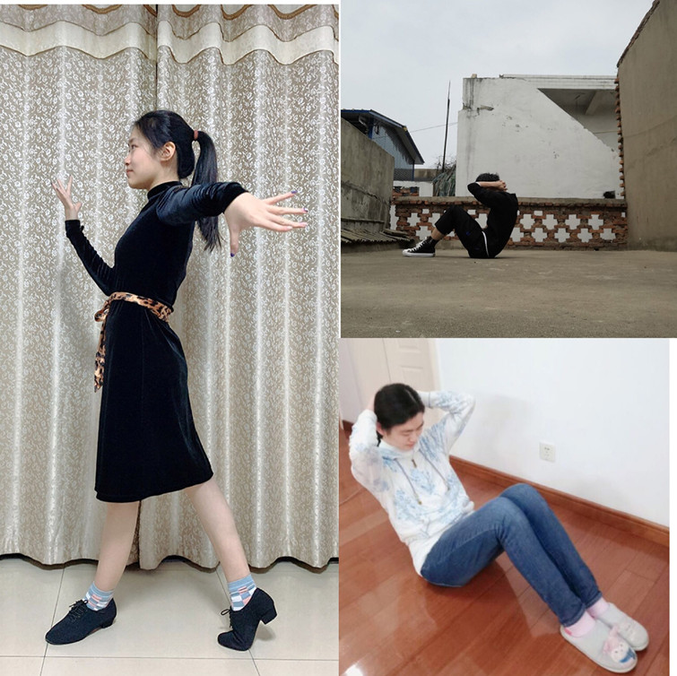 活动期间,虽受场地、器械等客观条件的影响,但学生们参与活动的热情丝毫未减。视频指导、手势打卡、线上答疑……一块块电子屏幕架起了跨越疫情的空中课堂;饮料瓶卧推、字典上推举、食用油负重深蹲、地板蛙泳练习……生活用品摇身一变训练神器。同学们通过线上联系重新体会到一起运动的快乐,大家在锻炼中洋溢着激动与喜悦,仿佛又回到在学校上体育课的快乐时光。学生们纷纷表示,此次“云锻炼”活动组织的正当其时,在督促大家建立有计划有规律锻炼的基础上,为居家的学习生活增添了不少色彩。从学生发来的视频中,我们不难看出,即使居家,学生积极饱满、乐观向上,可见学生对体育运动的热爱和不甘落后的精神。