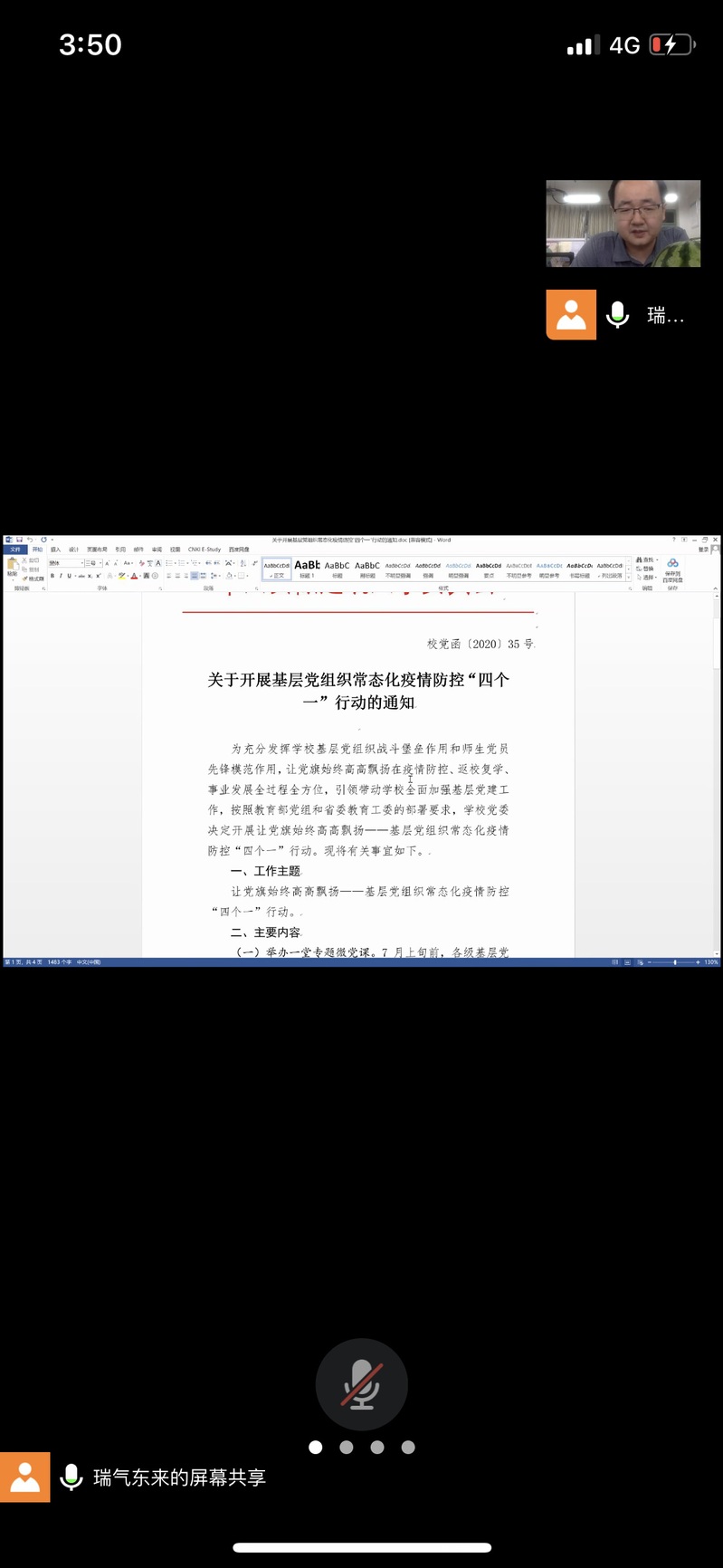 每位党员先后讲述自己五个多月来在学校党委统一指挥下投身疫情防控第一线,践行初心使命、体现责任担当的战“疫”故事,深切表达对中国共产党成立99周年的美好祝福。