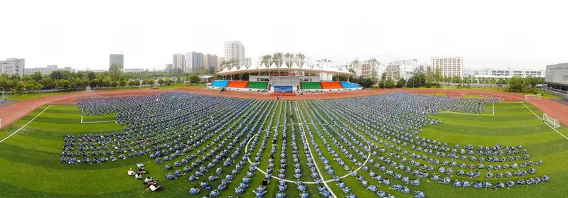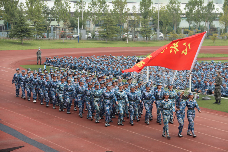 当娇艳的晨曦温暖地抚摸大地,那一抹抹动人的建大蓝从宿舍楼里涌出,汇聚成训练场上的汪洋大海。清晨的微风拂过同学们挺拔的军姿,年轻的面孔不惧骄阳。