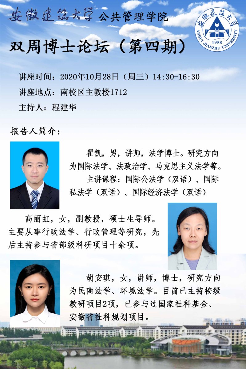 本网讯 10月28日,公管学院举行第四期“博士论坛”,翟凯、高丽虹、胡安琪三位博士分享各自的最新研究成果,学院全体青年博士、研究生参加论坛,论坛由程建华博士主持。