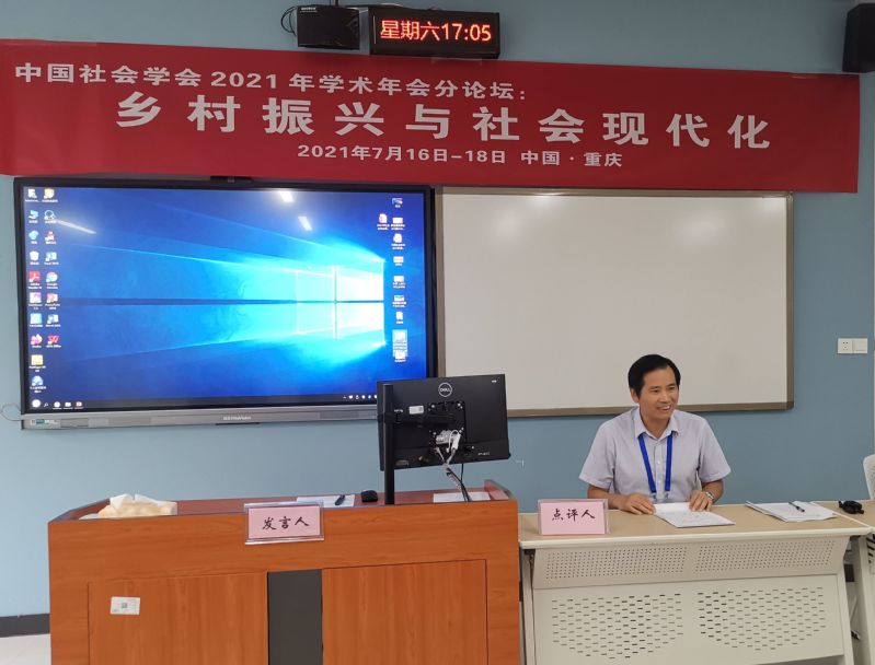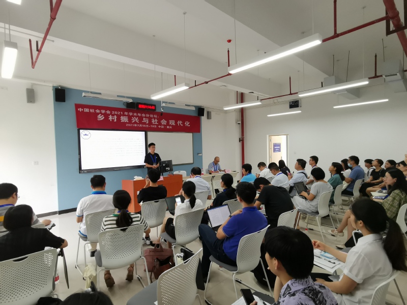 本网讯 7月17日,由我校公共管理学院、安徽省社会学会联合承办的中国社会学会2021年学术年会“乡村振兴与社会现代化”分论坛在重庆工商大学涵智楼成功举办。分论坛由副院长黄佳豪教授主持,院长丁仁船教授、安徽省委党校李琼英教授担任点评嘉宾,安徽省社会学会会长金乃俊致开幕词。受疫情影响,分论坛人数规模限制在30人。